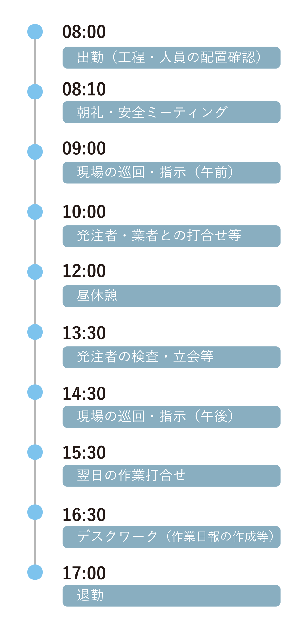 安全管理・品質管理・工程管理・土木作業が主となります。